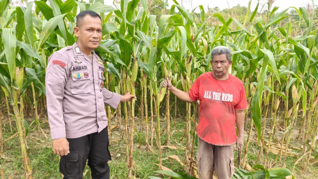 Bhabinkamtibmas Polsek Banggae Pantau Perkembangan Jagung di Buttu, Dukung Sukses Program Swasembada Pangan