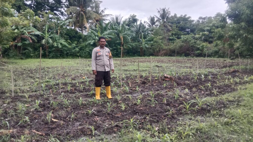 Dukung Ketahanan Pangan, Aipda Henri Suseno Tinjau Perkembangan Jagujng Kelompok Tani Sabar Jaya