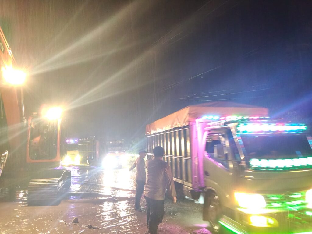 Longsoran terjadi setelah wilayah tersebut diguyur hujan dengan intensitas cukup tinggi selama beberapa hari terakhir. Tebing di sisi jalan yang tidak mampu menahan debit air akhirnya mengalami pergerakan tanah dan menjatuhkan material batu berukuran besar ke badan jalan. Selain tertutup material batu, lokasi kejadian juga tergenang air hujan, sehingga memperparah kondisi arus lalu lintas.