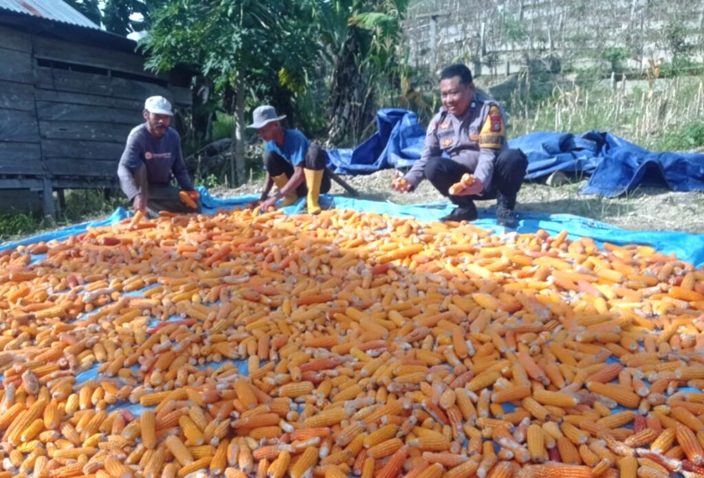 Panen Jagung 2 Ton, Wujud Nyata Bhabinkamtibmas Polsek Pamboang Polres Majene Sukseskan Ketahanan Pangan Nasional