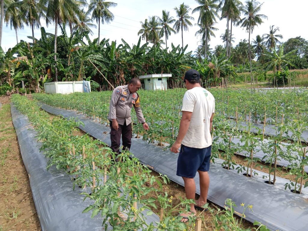 Dalam kegiatan tersebut, Bripka Abd. Basir menyambangi lahan pertanian yang saat ini tengah memasuki fase penting, yakni masa menjelang berbuah. Kehadirannya bukan hanya sebagai bentuk pengawasan wilayah, namun juga sebagai wujud nyata kepedulian Polri terhadap sektor pertanian yang menjadi salah satu penopang utama ekonomi masyarakat setempat.