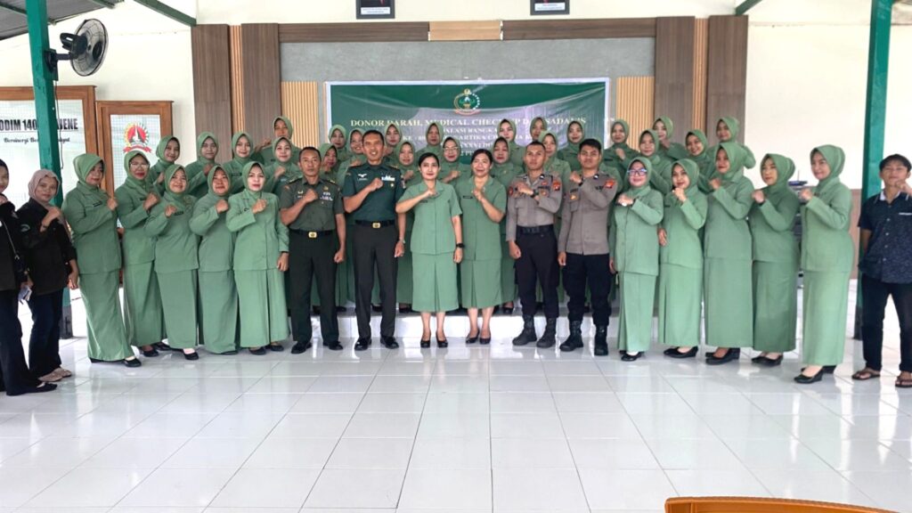 Kegiatan tersebut berlangsung di Aula Makodim 1401 Majene pada Senin (2/2/2026) dan diikuti dengan penuh antusias oleh anggota Polres Majene bersama unsur TNI dan Persit. Kehadiran personel Polres Majene menjadi wujud nyata sinergitas dan soliditas antara TNIβPolri dalam mendukung kegiatan kemanusiaan serta kepedulian terhadap kesehatan.