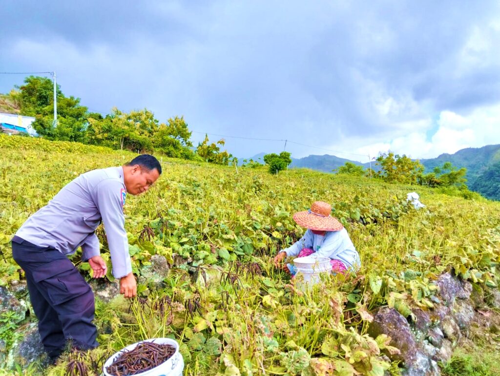 Dengan penuh keakraban, Aiptu Muchlis Nur bersama para petani memanen kacang hijau yang tampak tumbuh subur dan siap dipetik. Suasana kebersamaan tersebut mencerminkan sinergitas yang kuat antara Polri dan masyarakat dalam membangun sektor pertanian yang produktif.