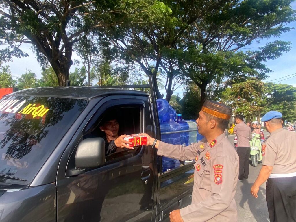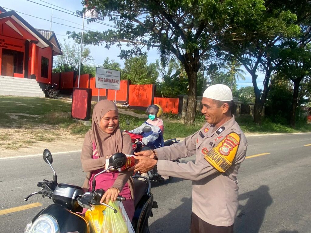 Menjelang waktu berbuka puasa, sejumlah personel Polsek Banggae turun langsung ke jalan membagikan paket takjil kepada para pengendara yang melintas di jalur tersebut. Aksi berbagi ini pun disambut antusias oleh masyarakat, terutama para pengendara roda dua maupun roda empat yang tengah dalam perjalanan menuju rumah atau tempat berbuka puasa.