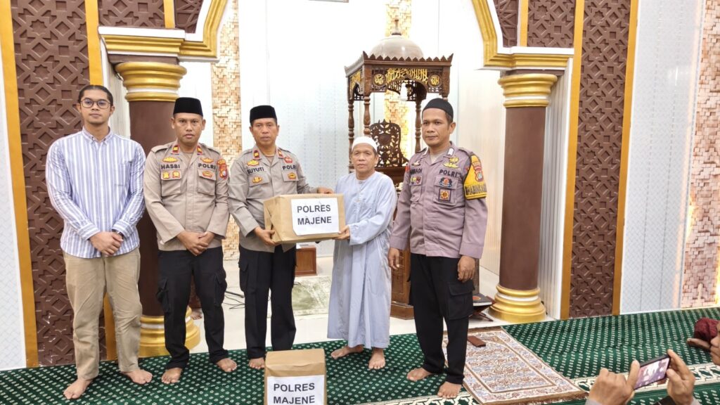 Sebagai bentuk kepedulian dan dukungan terhadap kegiatan keagamaan, rangkaian Safari Ramadhan kemudian dilanjutkan dengan penyerahan bantuan berupa Al-Qur’an dan perlengkapan salat dari Tim Safari Ramadhan Polres Majene kepada pengurus Masjid Miftahul Rahmah.