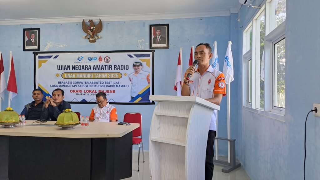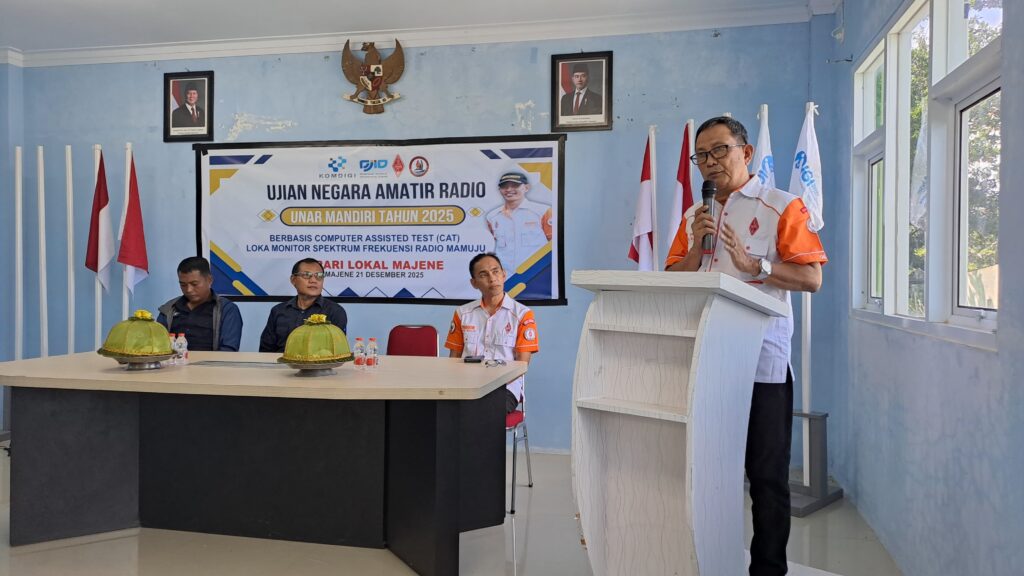 MAJENE β Loka Monitor Spektrum Frekuensi Radio (LMSFR) Mamuju bekerja sama dengan Organisasi Amatir Radio Indonesia (ORARI) Lokal Majene sukses melaksanakan Ujian Negara Amatir Radio (UNAR) Mandiri Tahun 2025 berbasis Computer Assisted Test (CAT). Kegiatan ini dilaksanakan pada Minggu, 21 Desember 2025, bertempat di ruang komputer Madrasah Aliyah Negeri (MAN) 1 Majene, Jalan Sultan Hasanuddin, Kelurahan Tande Timur, Kecamatan Banggae Timur, Kabupaten Majene, Provinsi Sulawesi Barat.